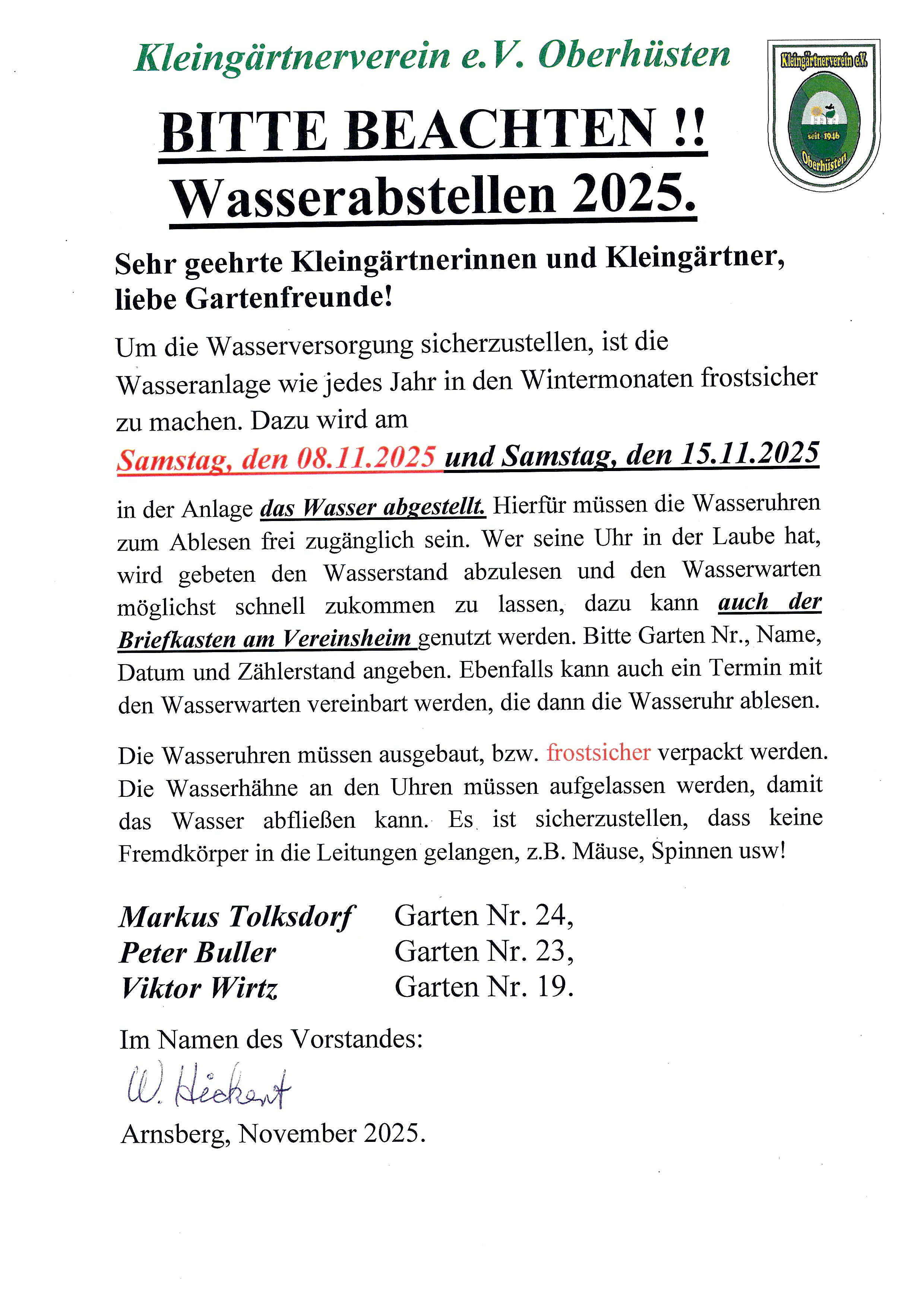 *!!! Bitte immer den aktullen Aushang am Vereinshaus Beachten !!!*